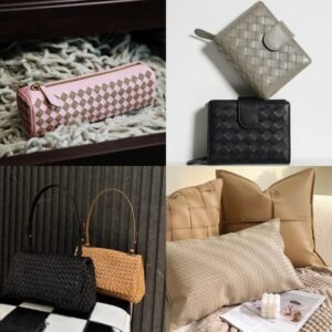 Woven print faux leather features a realistic woven texture crafted from premium materials, blending classic and contemporary styles seamlessly.